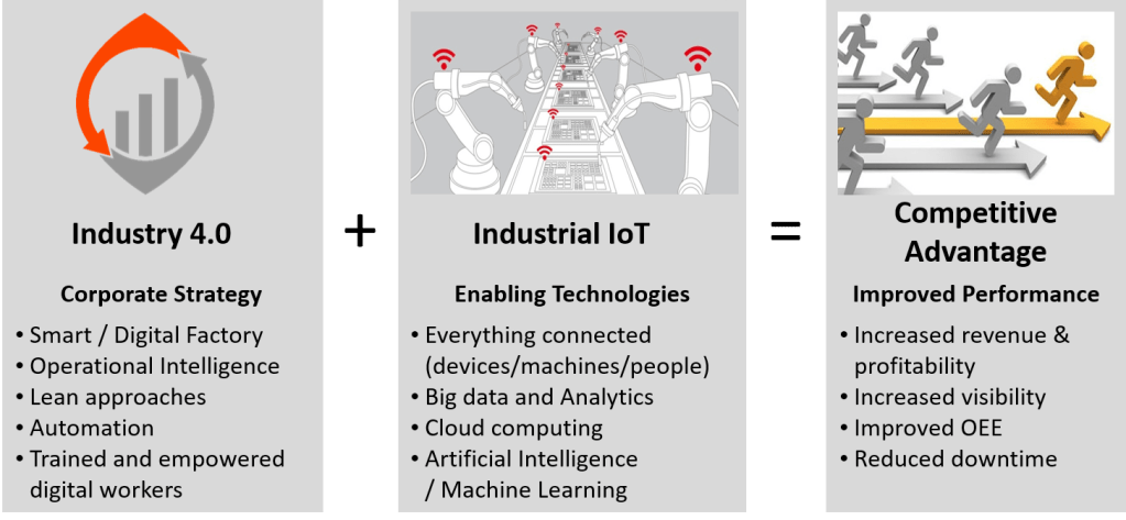 Industry 4.0 is an approach or corporate strategy that should be adopted at the enterprise level and when coupled with the technology of IIoT delivers considerable competitive advantage across the business.