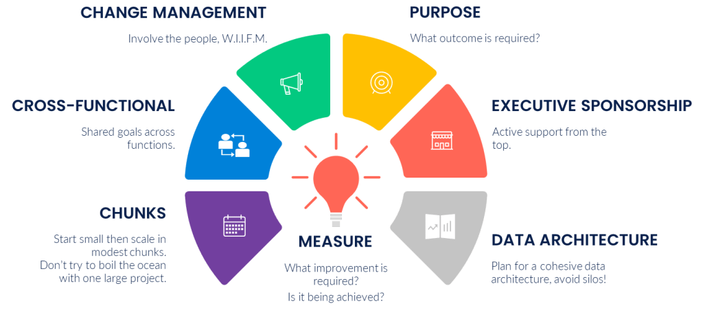 Break your project into manageable chunks, think agile approaches, small projects that deliver value, and as far as possible make the projects cross-functional in nature. Try to avoid projects focused on a single area, otherwise there is a risk of creating new data silos.